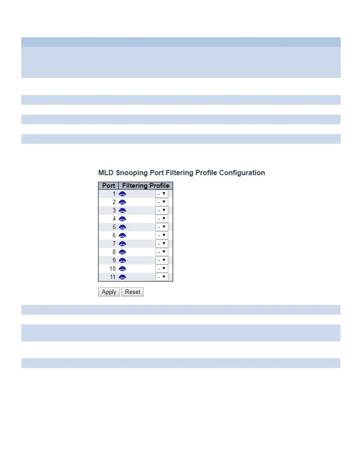 Filtering Profile Select the IPMC Profile as the filtering condition for the specific port. Summary about the