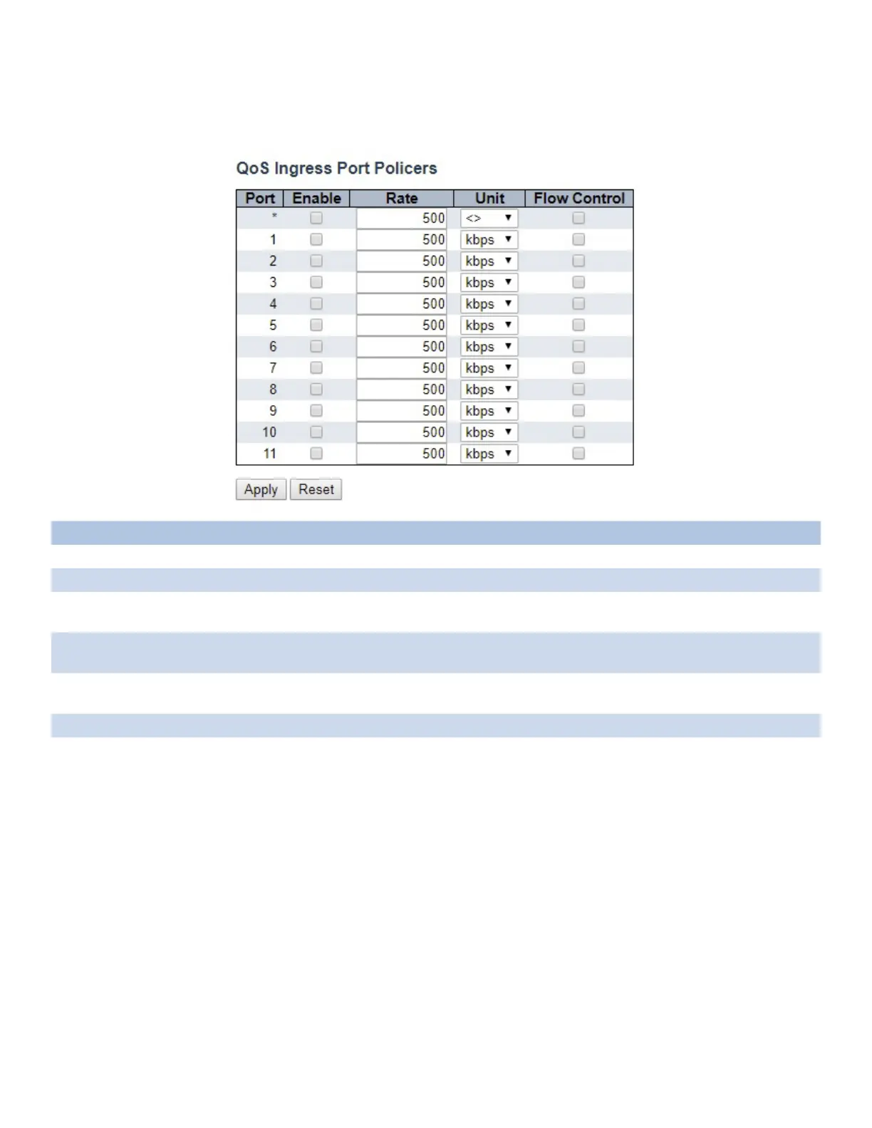 Unit Controls the unit of measure for the policer rate as kbps, Mbps, fps or kfps. The default value is