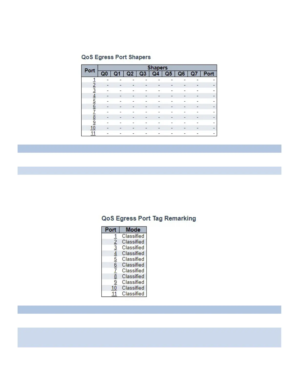 This page provides an overview of QoS Egress Port Shapers for all switch ports.