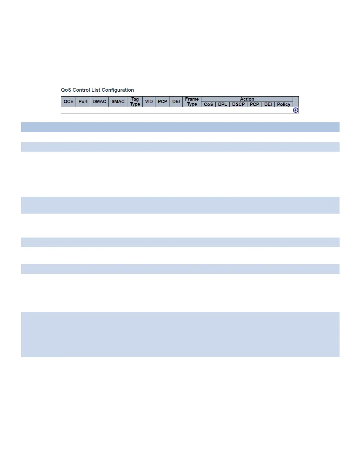 This page shows the QoS Control List(QCL), which is made up of the QCEs. Each row describes a