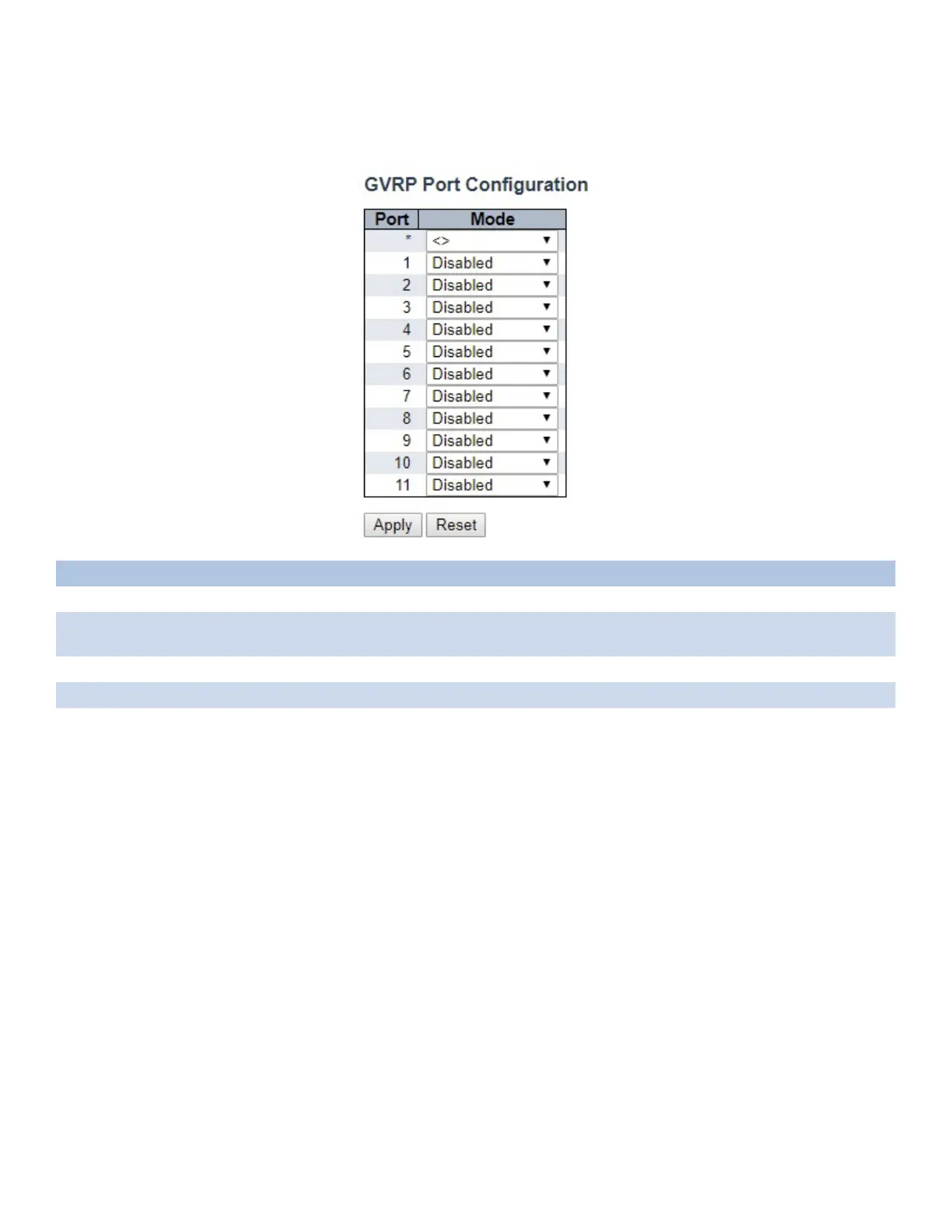 Mode Mode can be either ‘Disabled’ or ‘GVRP enabled’. These values turn the GVRP feature off or on