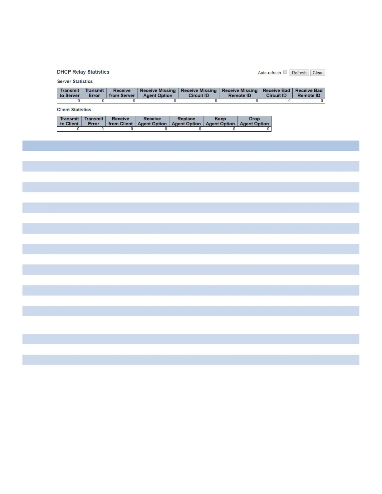This page provides statistics for DHCP relay.