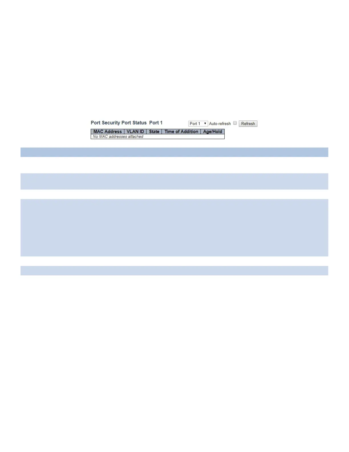 This page shows the MAC addresses secured by the Port Security module. Port Security is a