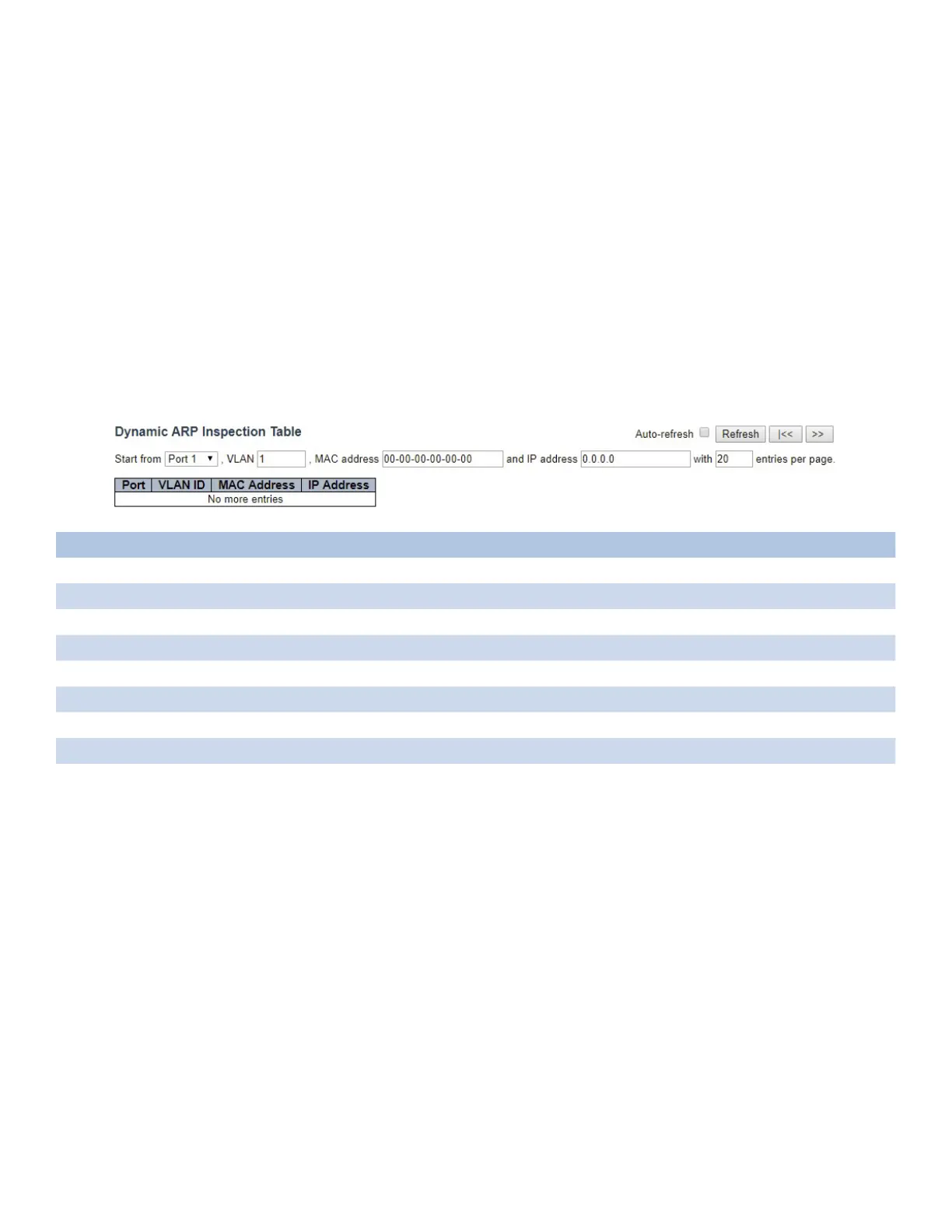|<< Click to update the table starting from the first entry in the Dynamic ARP Inspection Table.