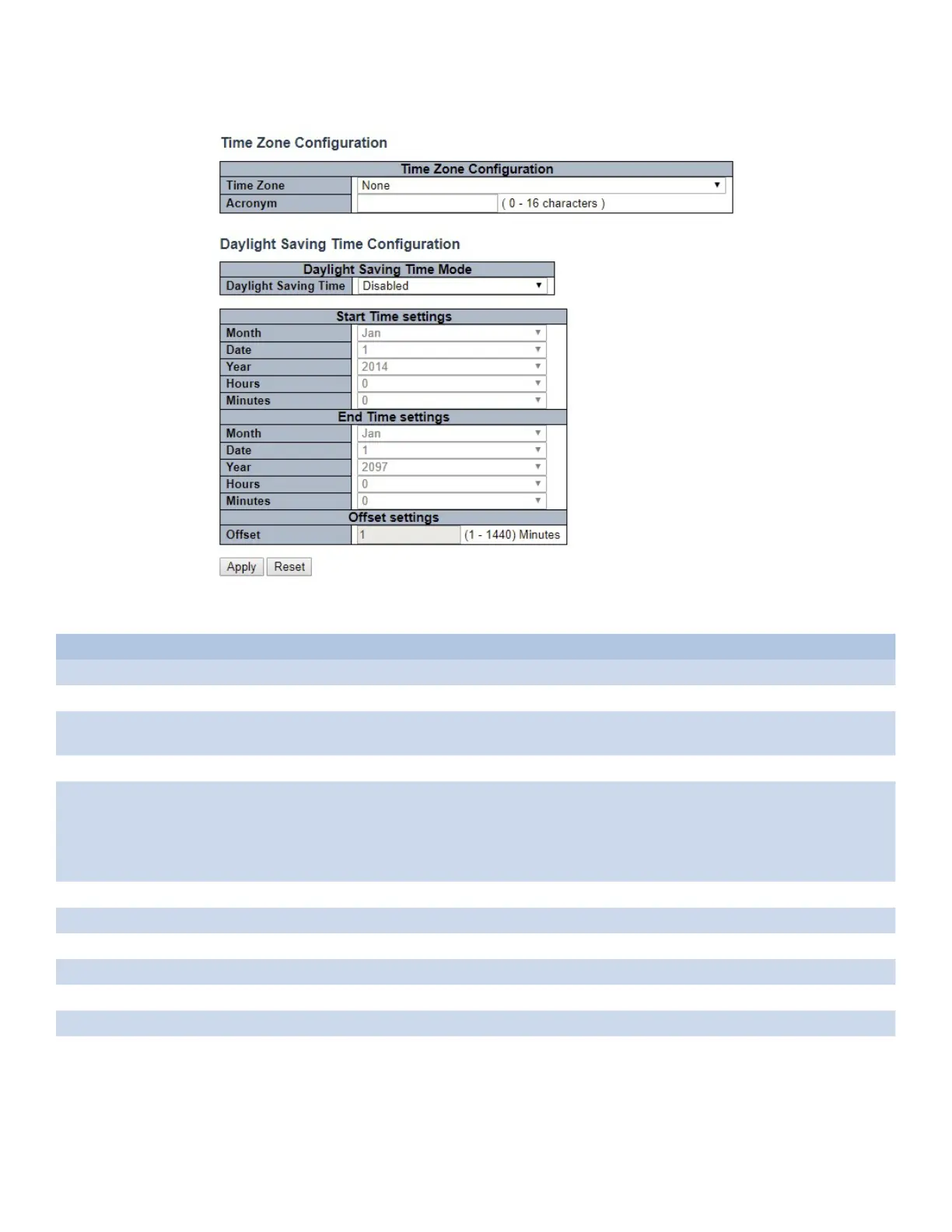 Daylight Saving Time duration. Select ‘Disable’ to disable the Daylight Saving Time configuration. Select