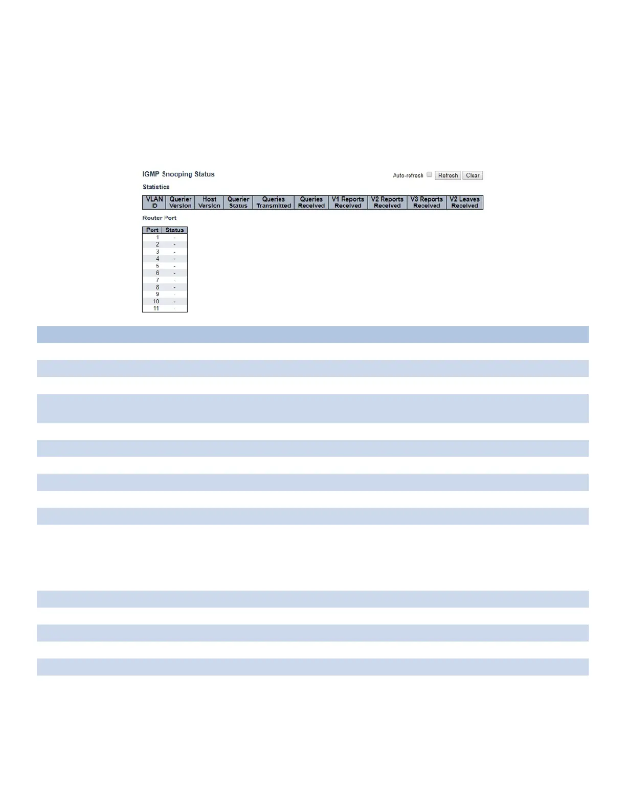 This page provides IGMP Snooping status.