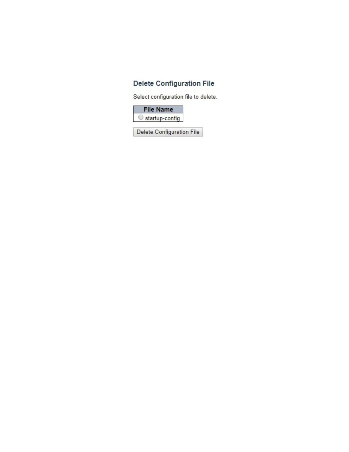 Select “startup-config” file, and click “Delete Configuration File” button to delete the startup-