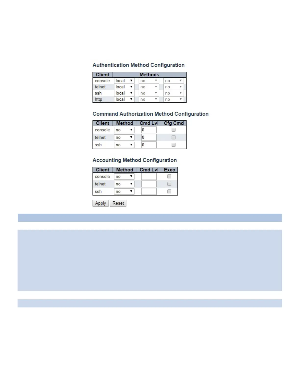 This page allows you to configure how a user is authenticated when he logs into the switch via one