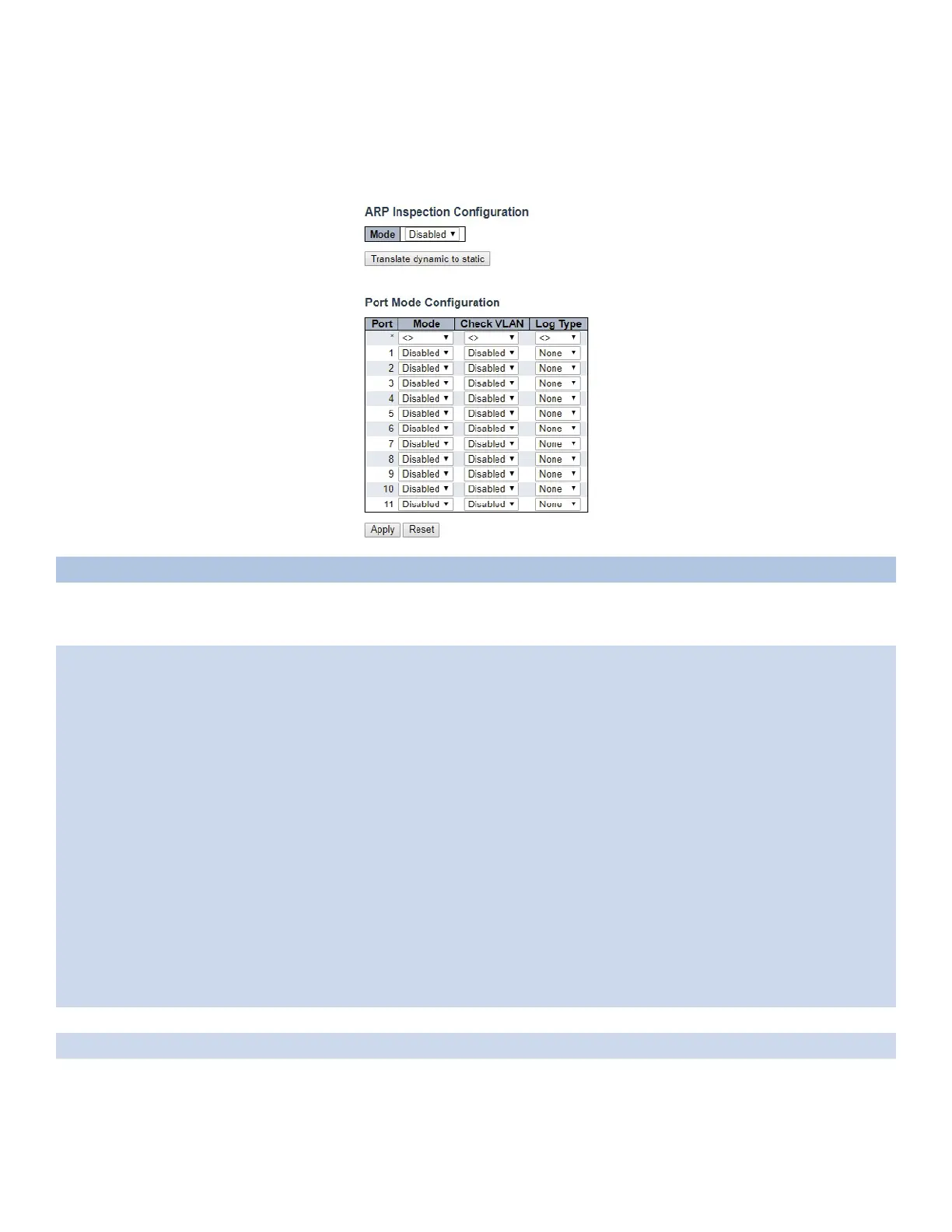 VLAN” is disabled, the log type of ARP Inspection will refer to the port setting.