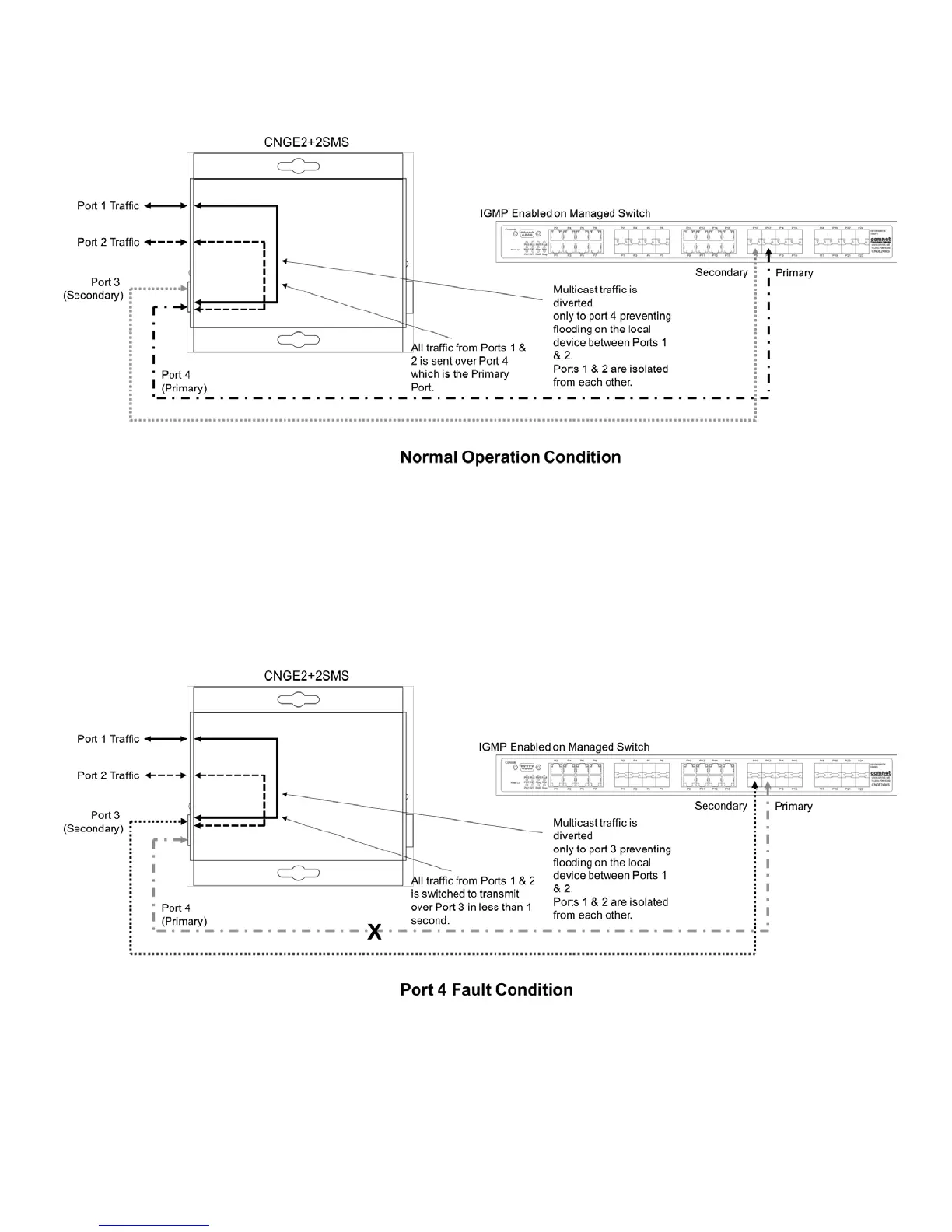 When Port 4 comes back online all traffic from Ports 1 & 2 is switched back to transmit