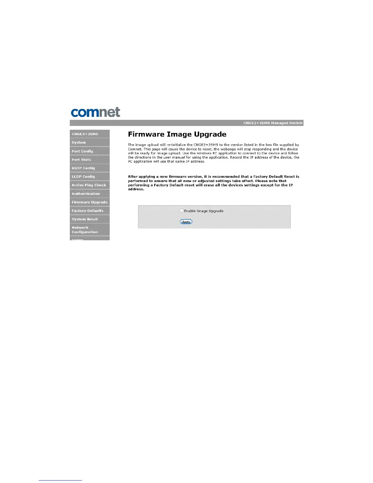 Details on how to upload the new image is located in Firmware Upgrade section on Page 51.