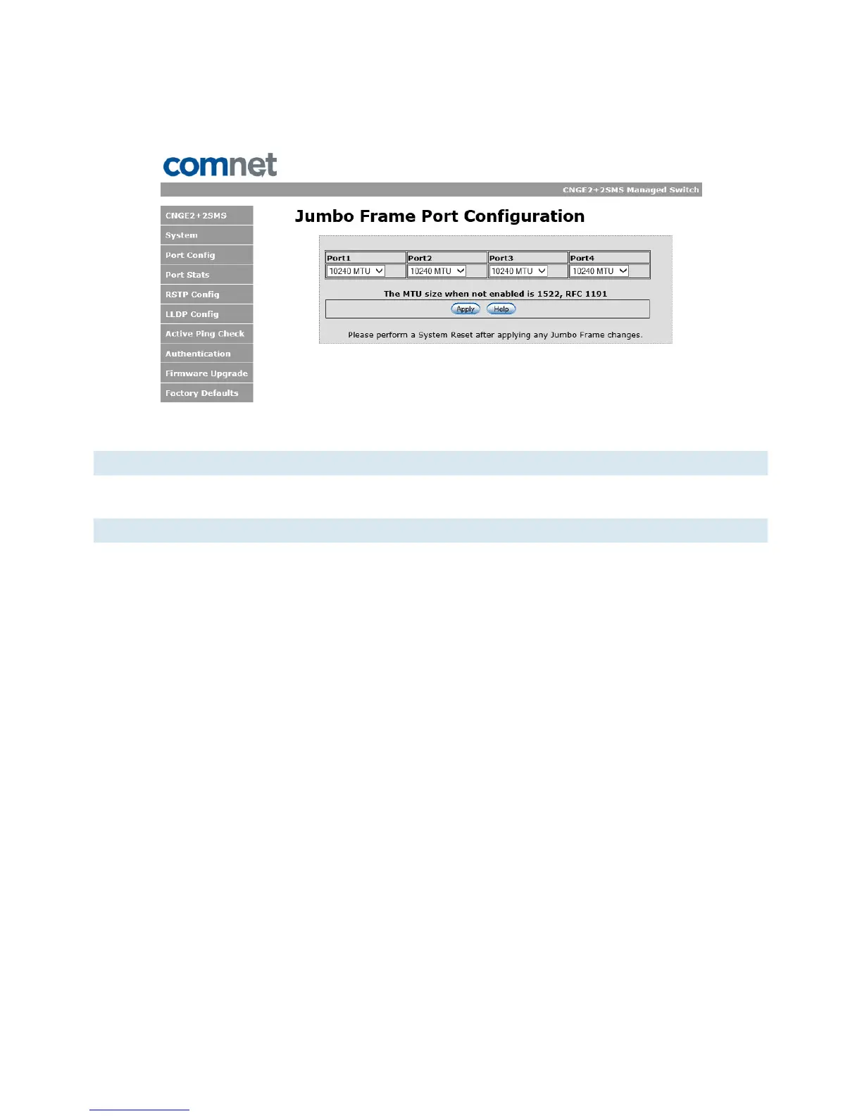 Important Note A system reset must be performed after making changes to the Jumbo Frame