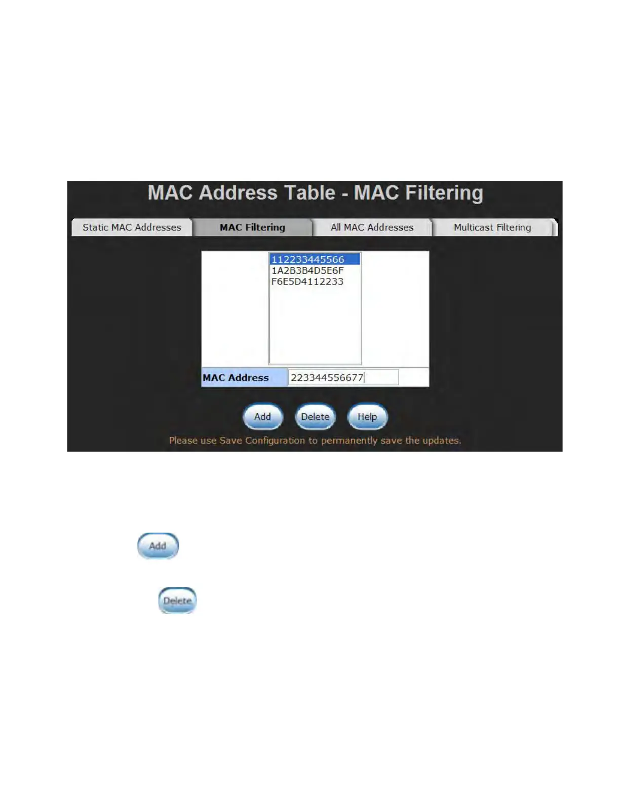 If you want to delete the MAC address from the filtering table, select the MAC address