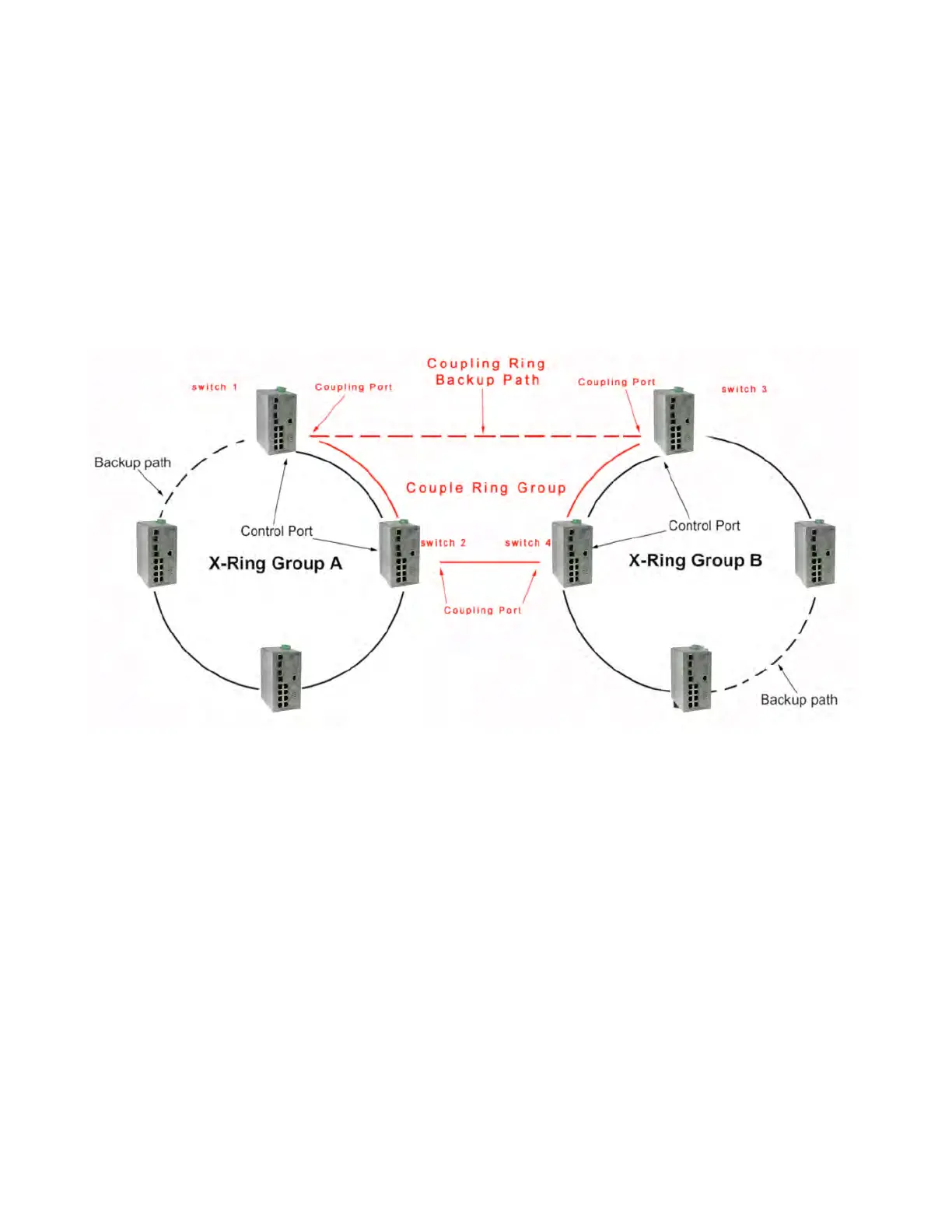 In the network, it may have more than one X-Ring group. By using the coupling ring function,