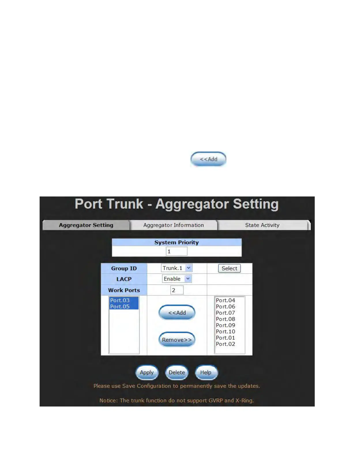 4. Include the member ports by clicking the button after selecting the port
