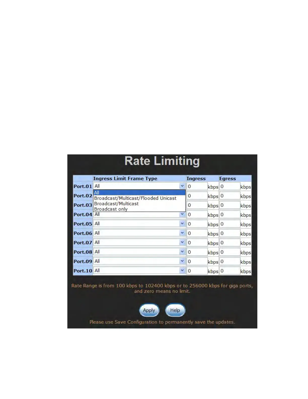 Ingress Limit Frame type: select the frame type that wants to filter. There are four