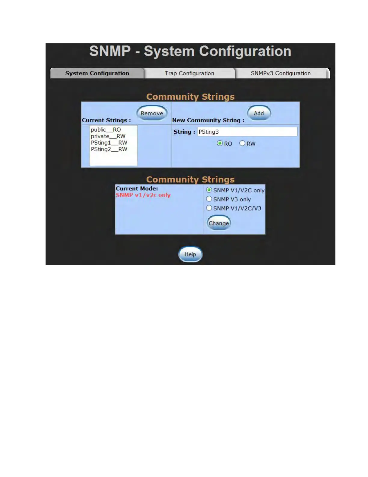 SNMP System Configuration interface
