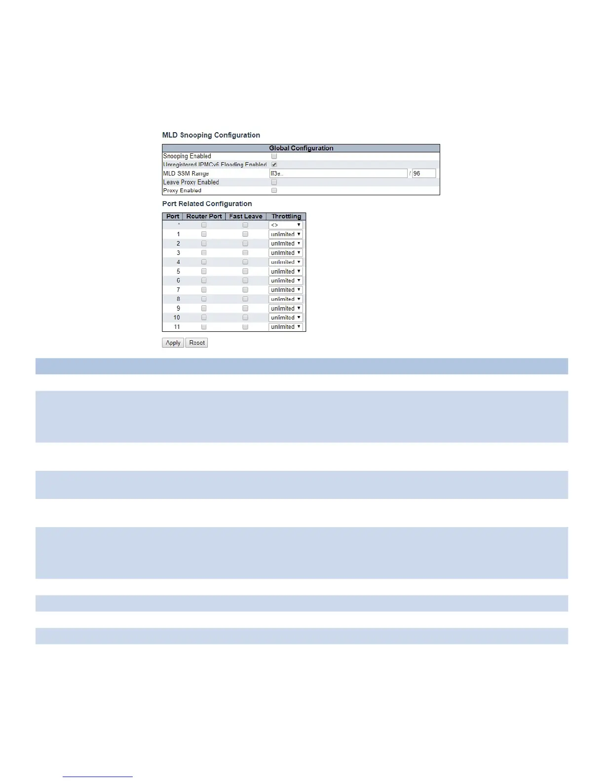 Proxy Enable Enable MLD Proxy. This feature can be used to avoid forwarding unnecessary join and leave