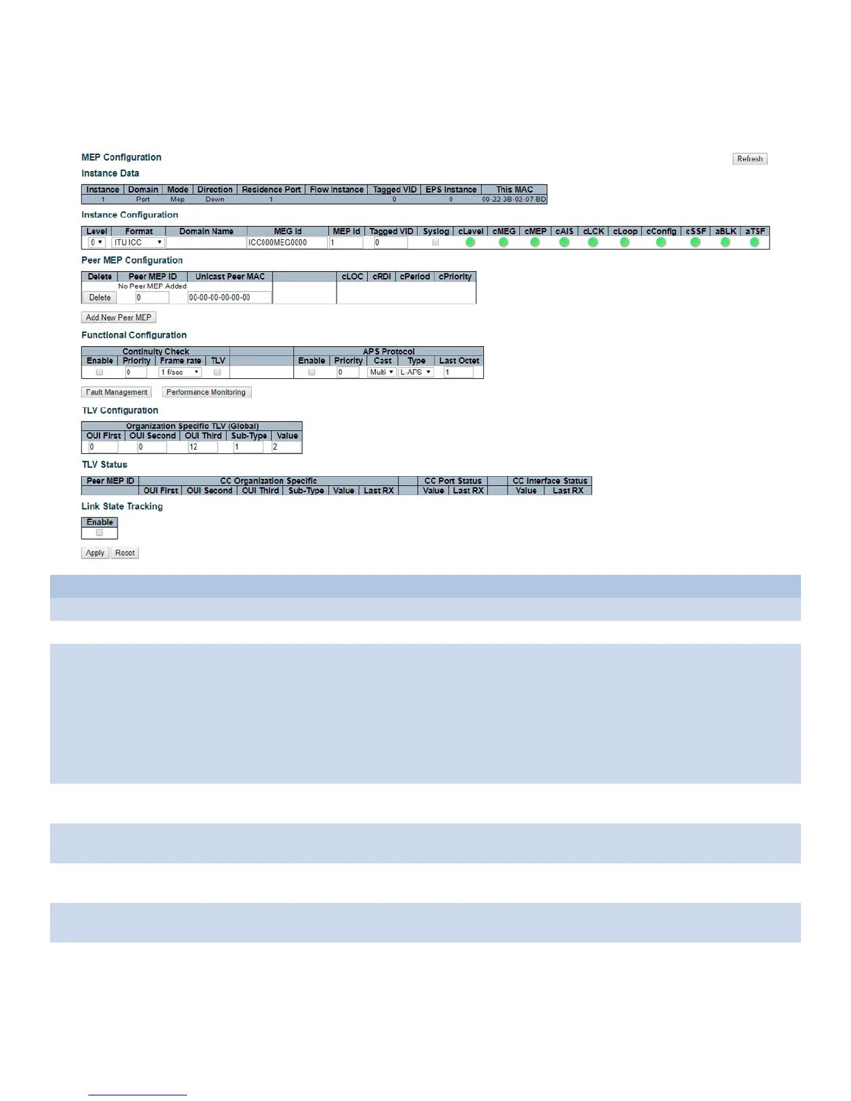 the EVC. For a VLAN MEP the port must be a VLAN member.