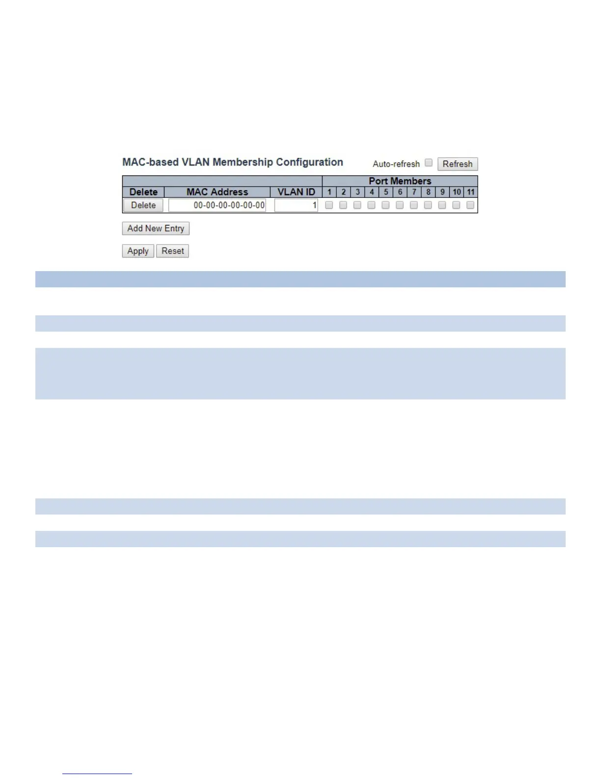Port Members A row of check boxes for each port is displayed for each MAC to VLAN ID mapping entry.