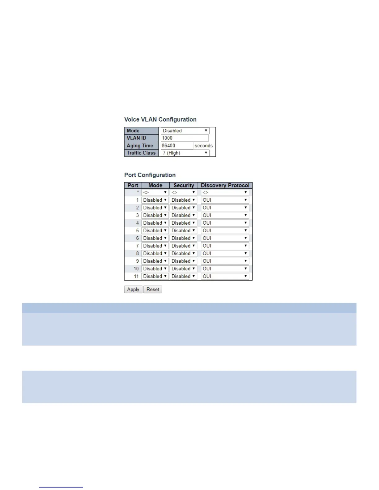 VLAN ID Indicates the Voice VLAN ID. It should be a unique VLAN ID in the system and cannot equal each