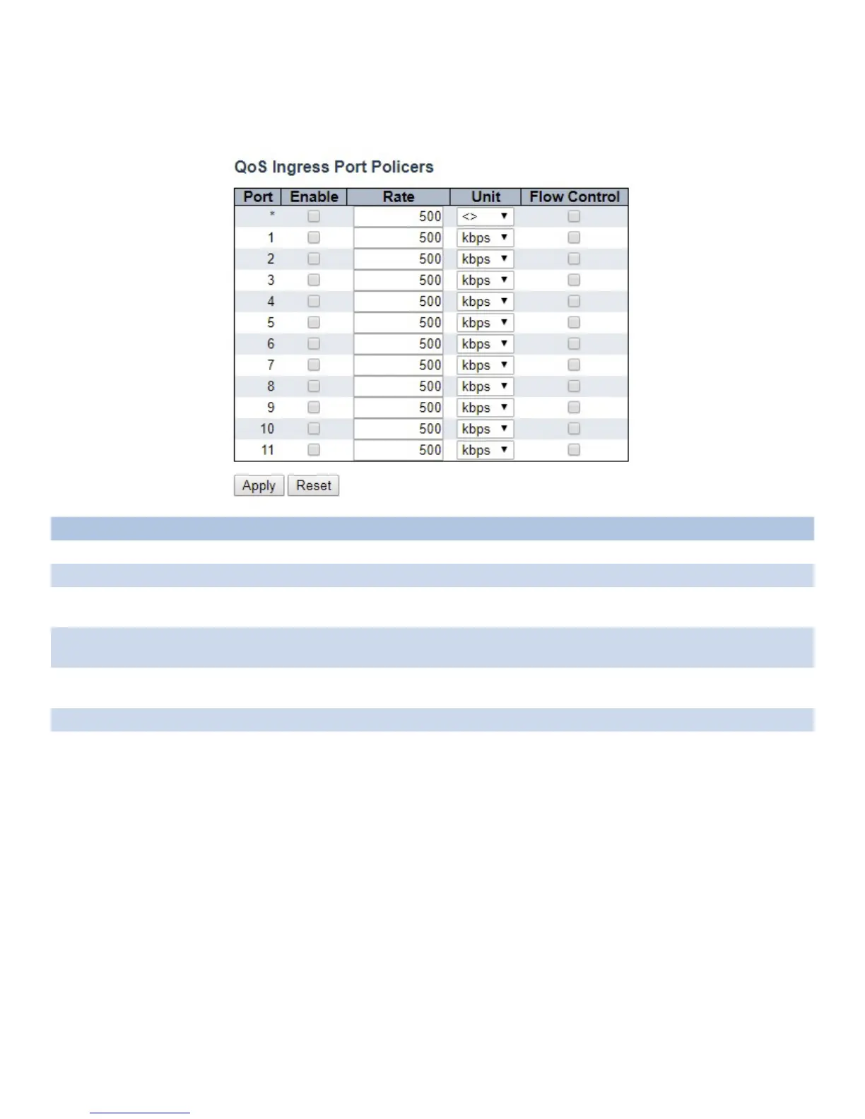 Unit Controls the unit of measure for the policer rate as kbps, Mbps, fps or kfps. The default value is