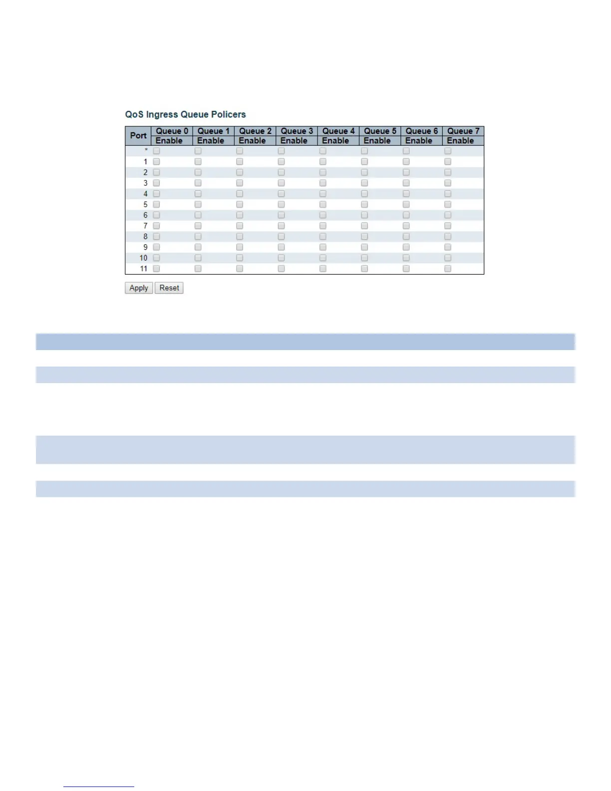 This page allows you to configure the Queue Policer settings for all switch ports.