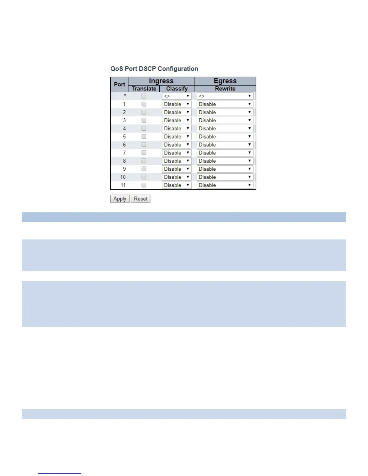 This page allows you to configure the basic QoS Port DSCP Configuration settings for all switch ports.