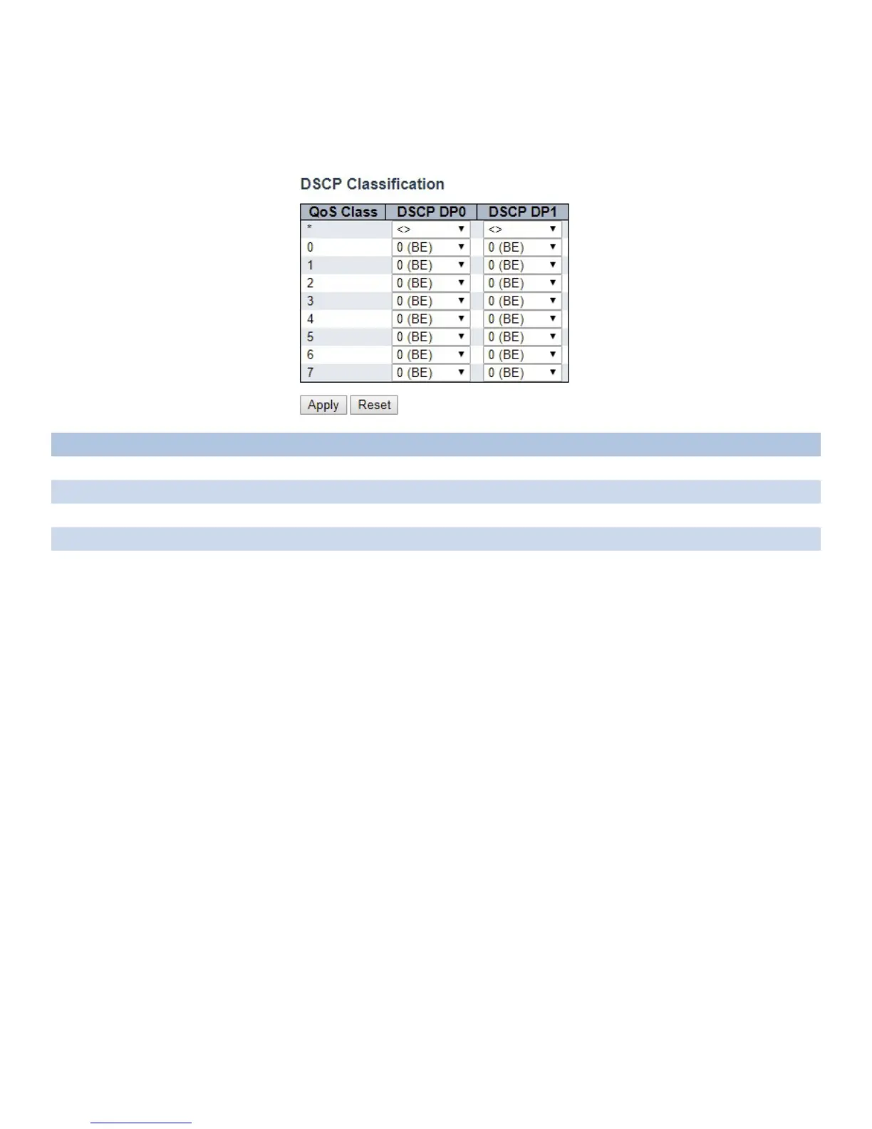 This page allows you to configure the mapping of QoS class and Drop Precedence Level to DSCP