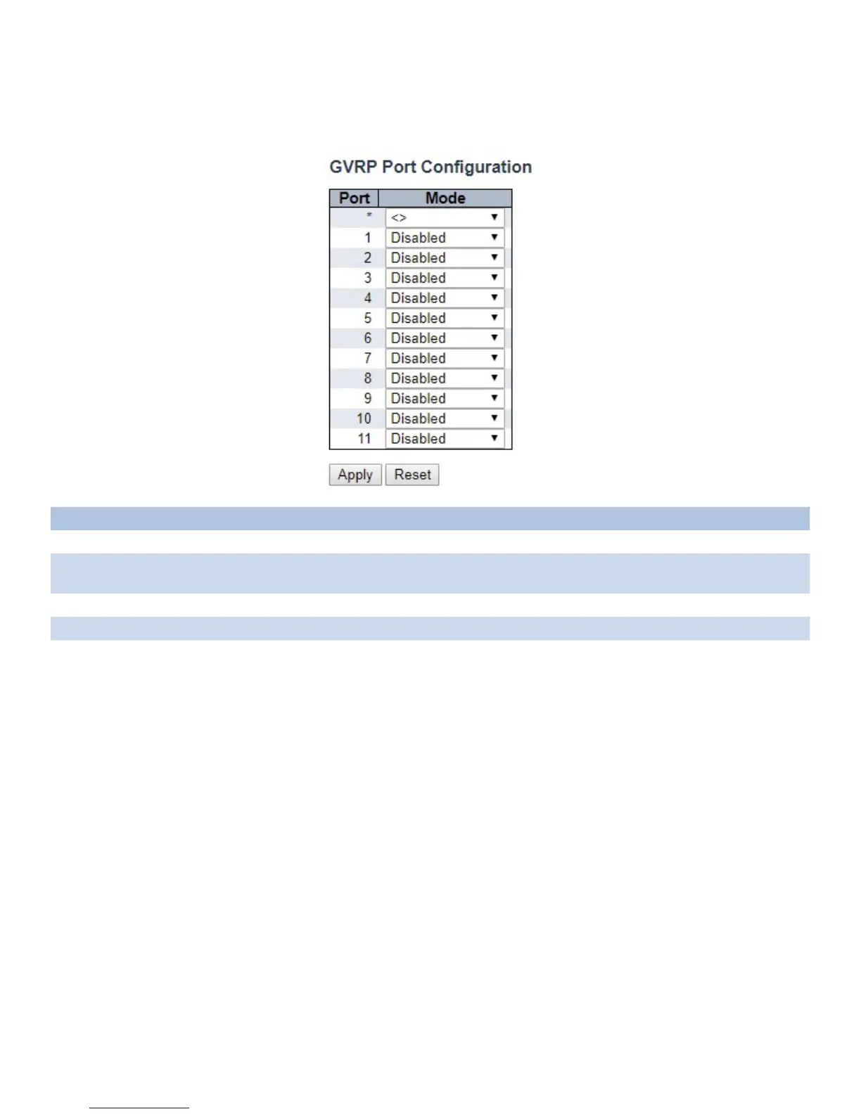 Mode Mode can be either ‘Disabled’ or ‘GVRP enabled’. These values turn the GVRP feature off or on