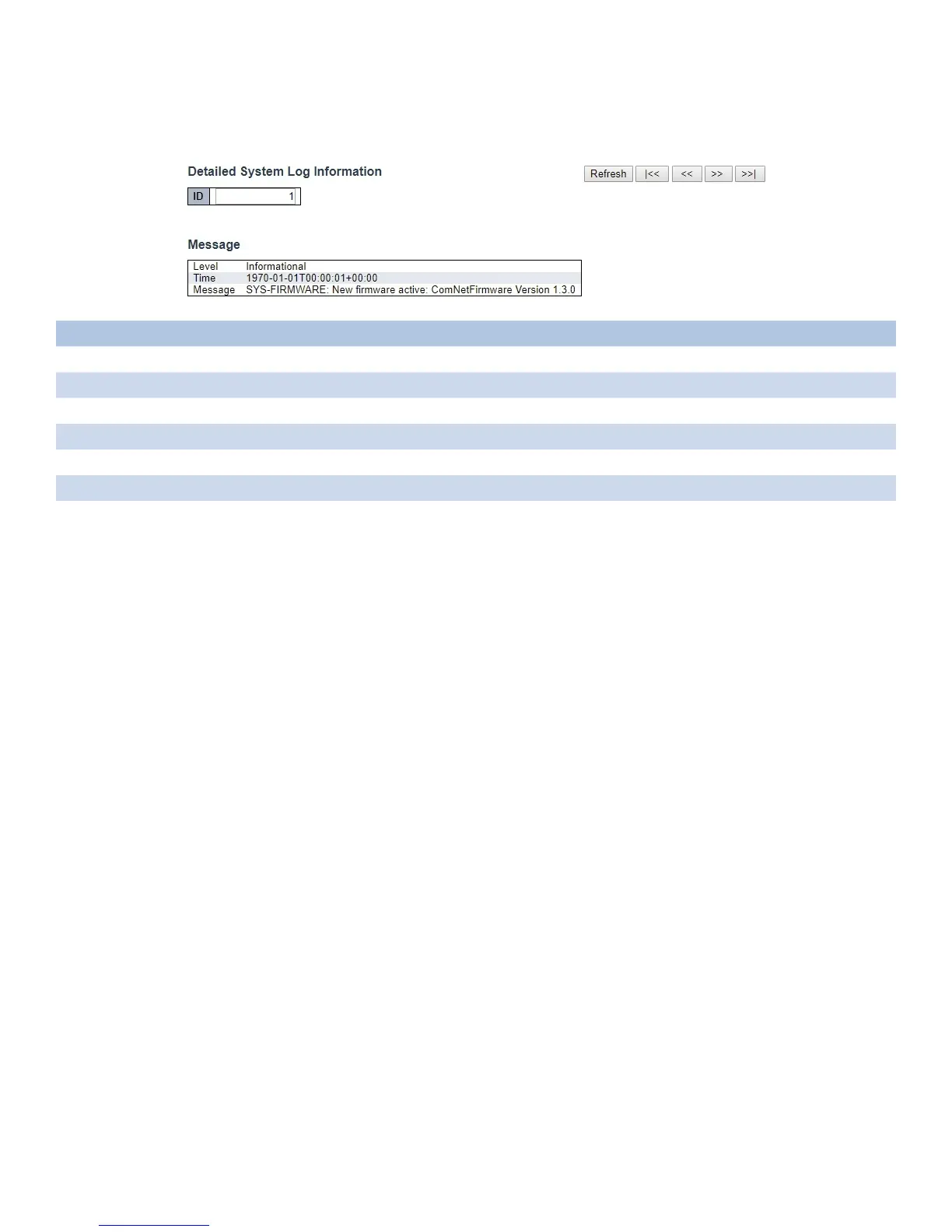 |<< Click to update the system log entry to the first available entry ID.