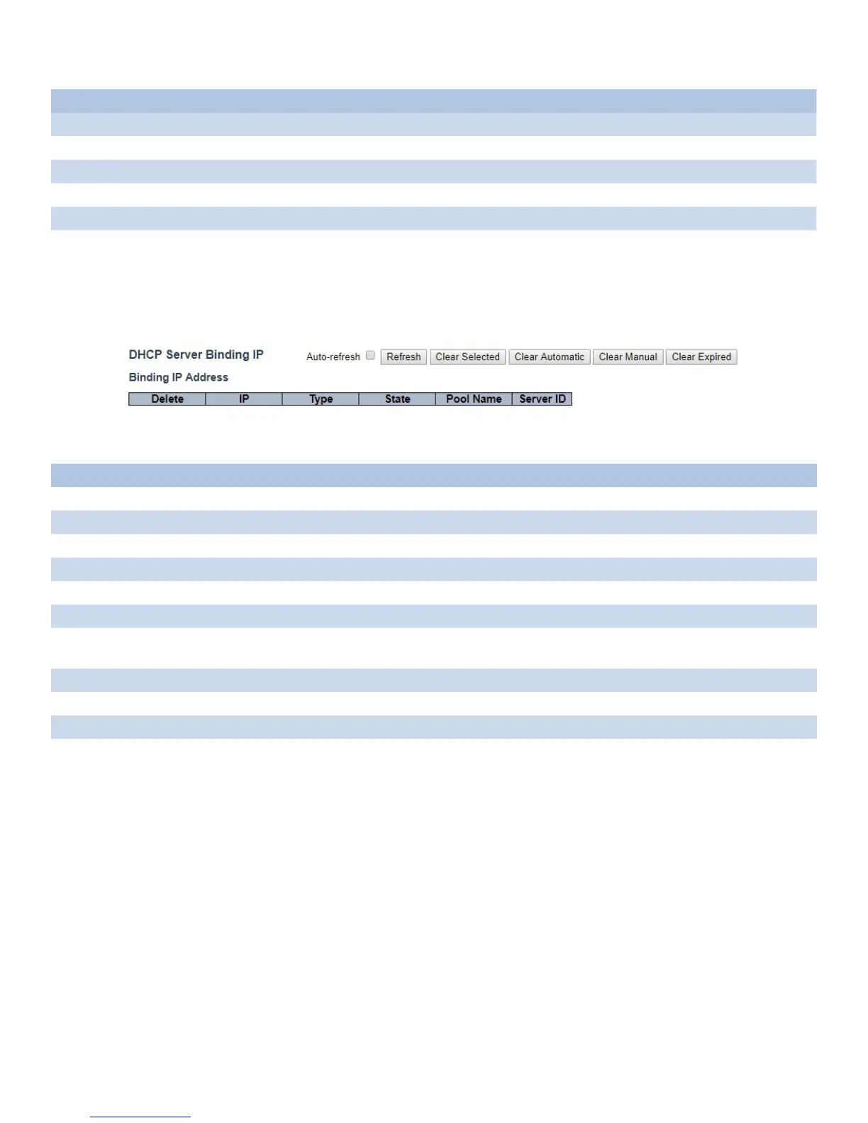 This page displays bindings generated for DHCP clients.