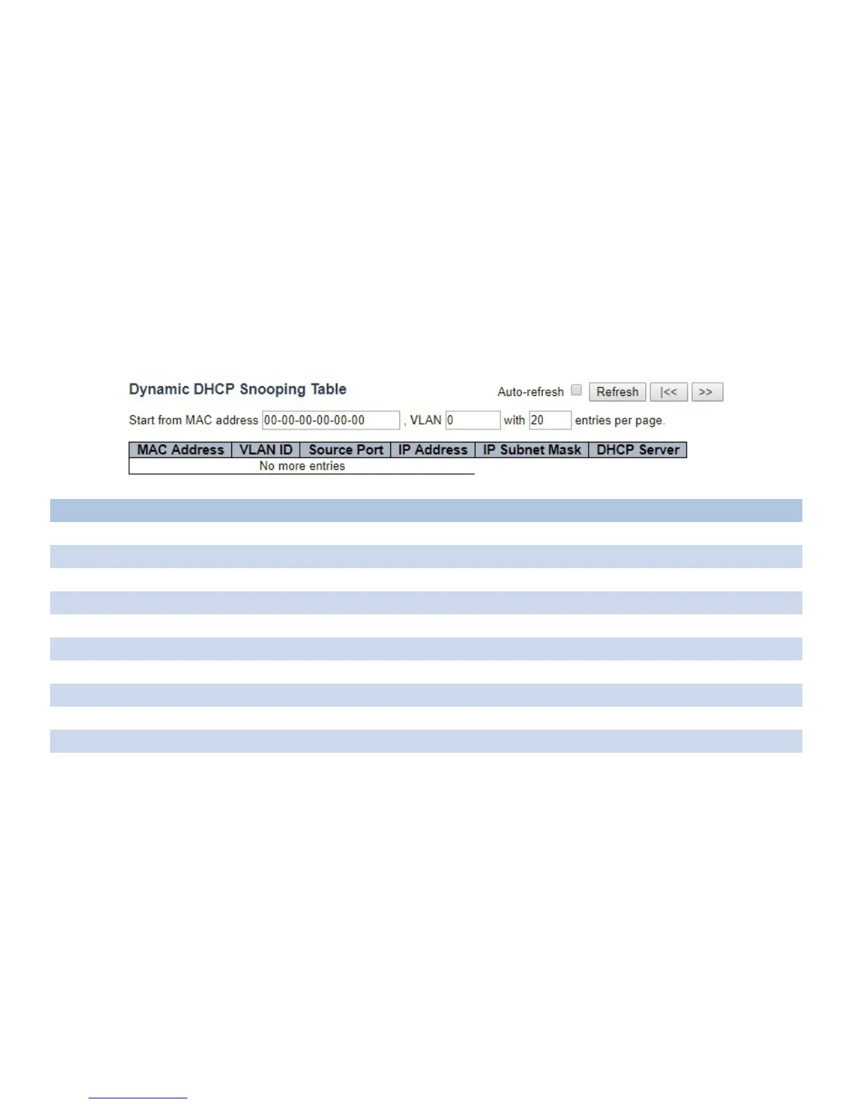 |<< Click to update the table starting from the first entry in the Dynamic DHCP snooping Table