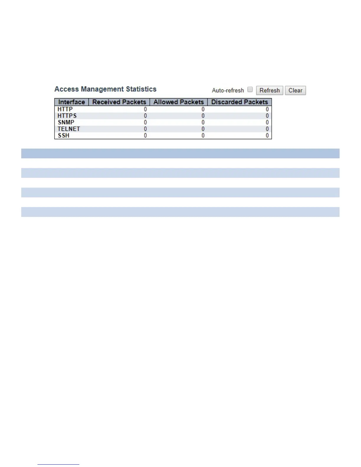 Discarded Packets Number of discarded packets from the interface when access management mode is enabled.