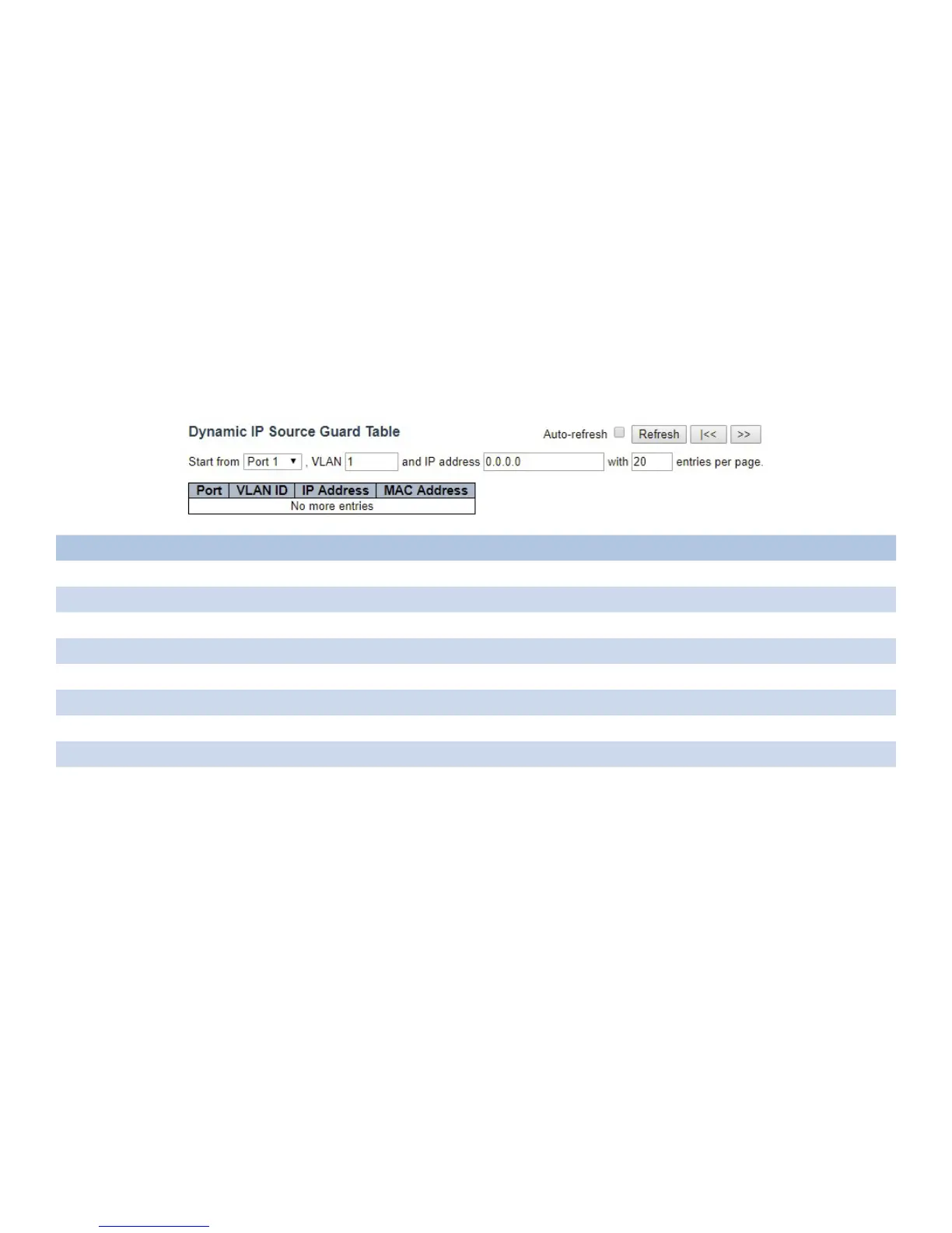 starting point in the Dynamic IP Source Guard Table. Clicking the “Refresh” button will update