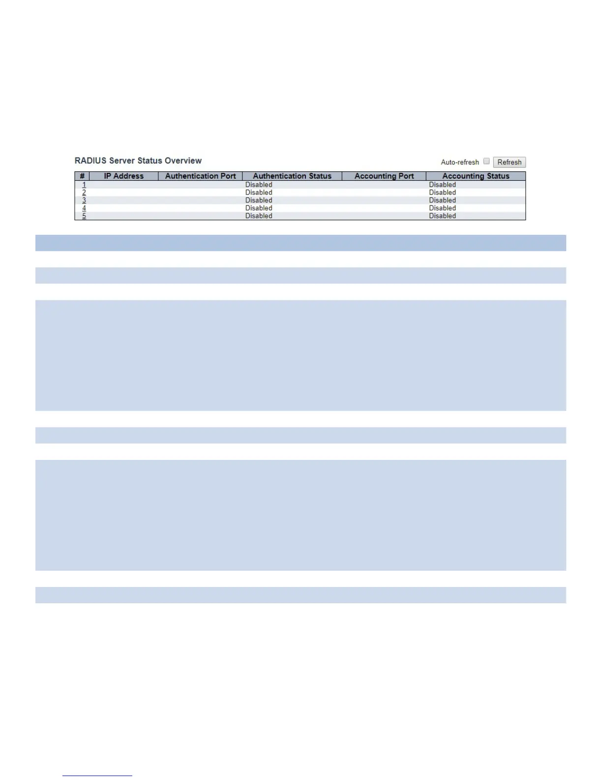 This page provides an overview of the status of the RADIUS servers configurable on the