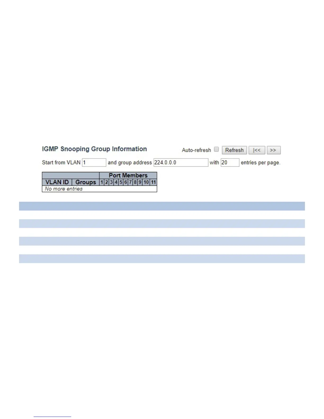 IGMP Group Table. Clicking the “Refresh” button will update the displayed table starting from