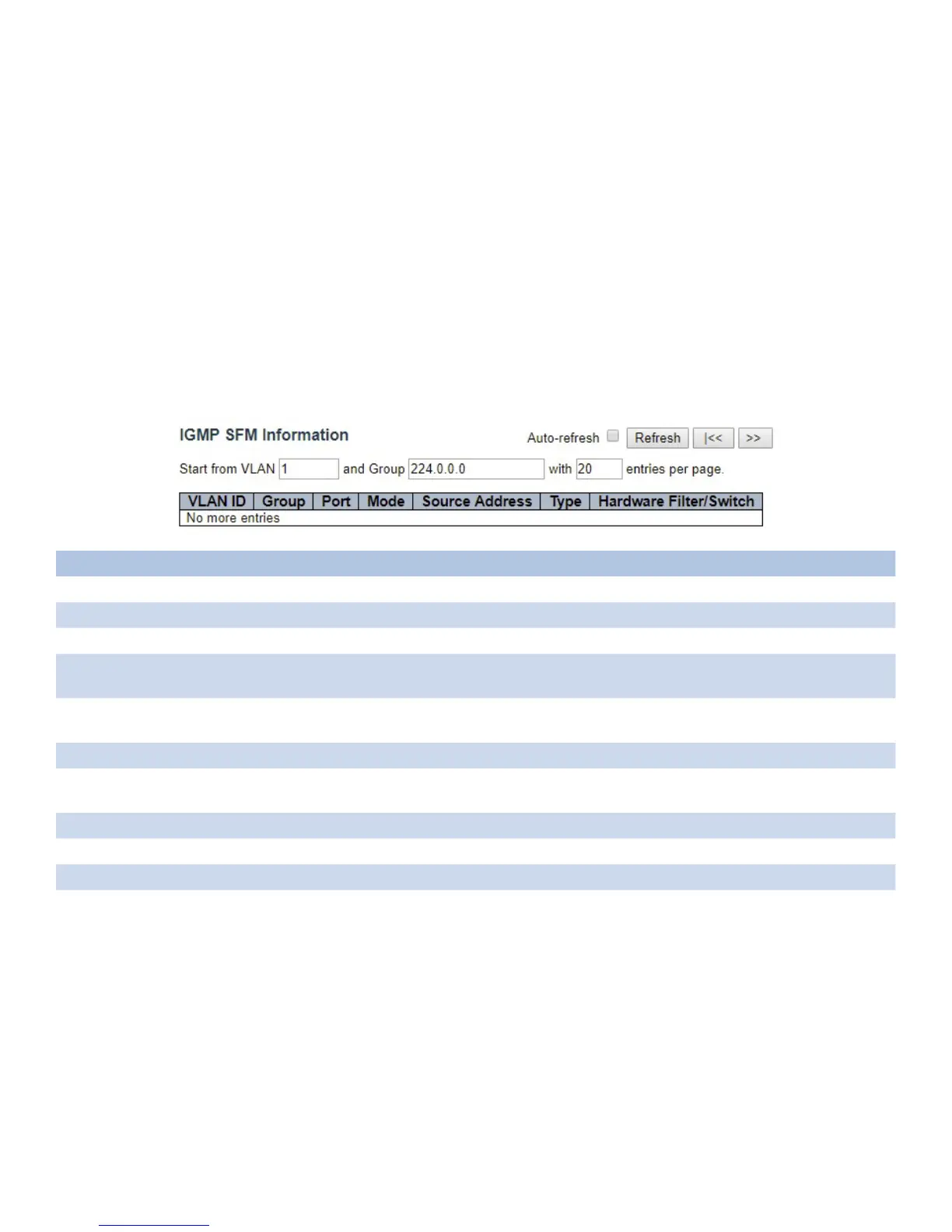 IGMP SFM Information Table. Clicking the “Refresh” button will update the displayed table starting