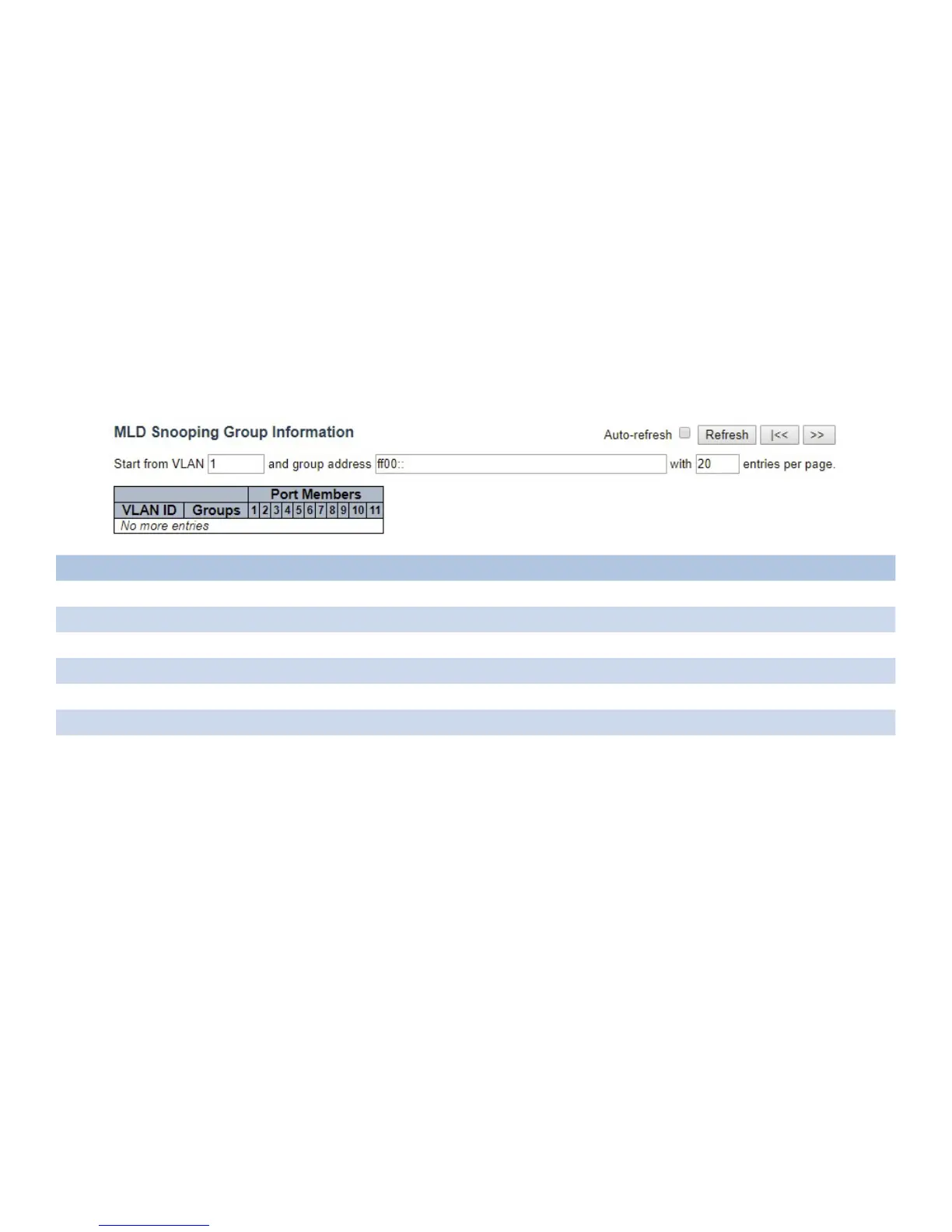 |<< Click to update the table starting from the first entry in the MLD Groups Information Table.