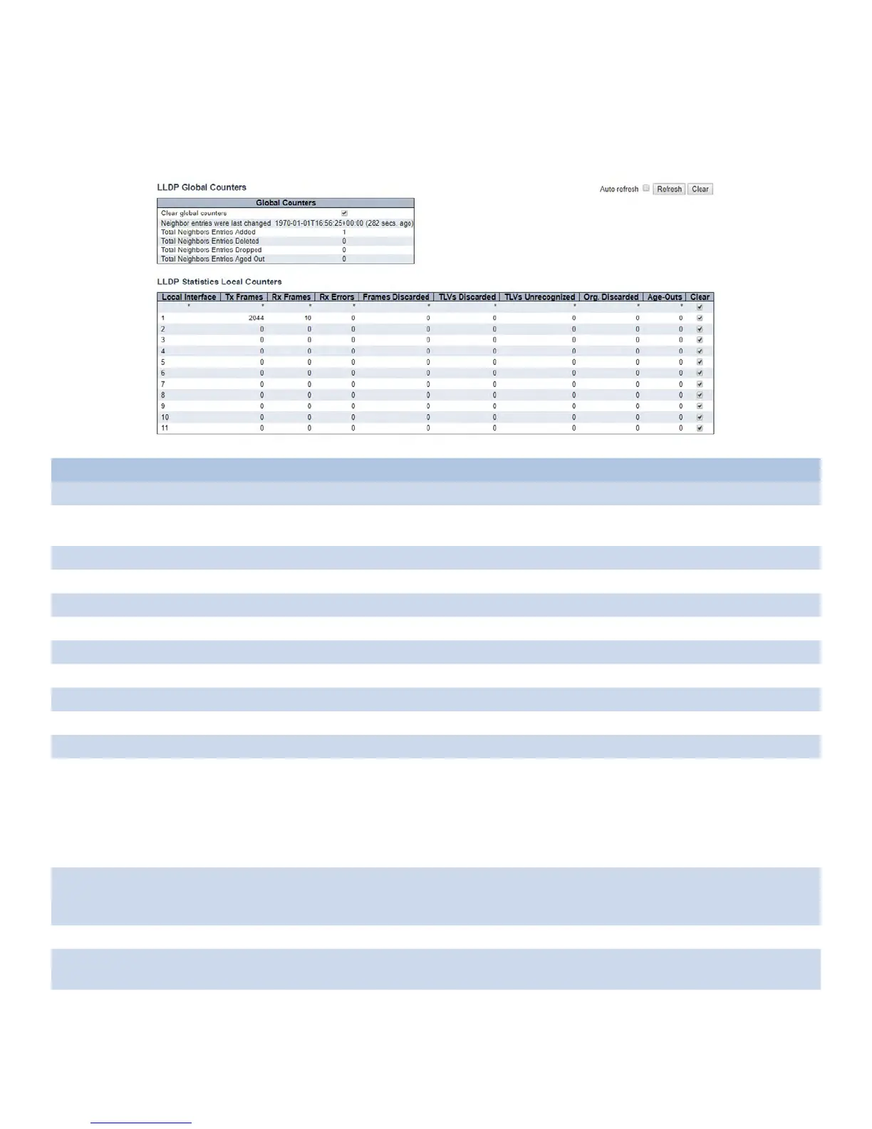 Total Neighbors Entries Dropped Shows the number of LLDP frames dropped due to the entry table being full.