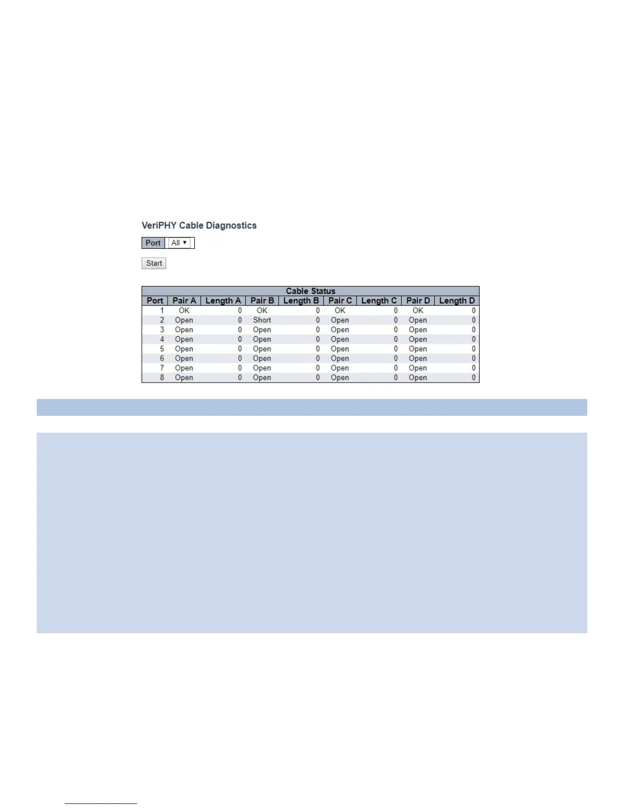 automatically, and you can view the cable diagnostics results in the cable status table. Note that
