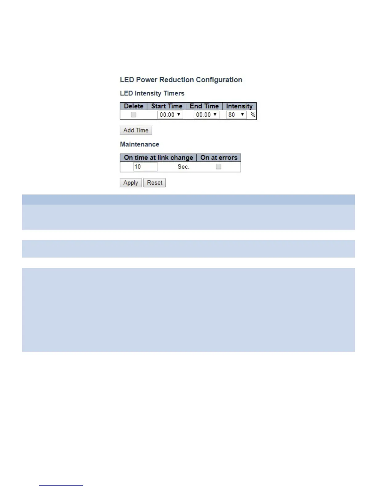 LEDs Intensity The LEDs power consumption can be reduced by lowering the LEDs intensity. LEDs intensity could