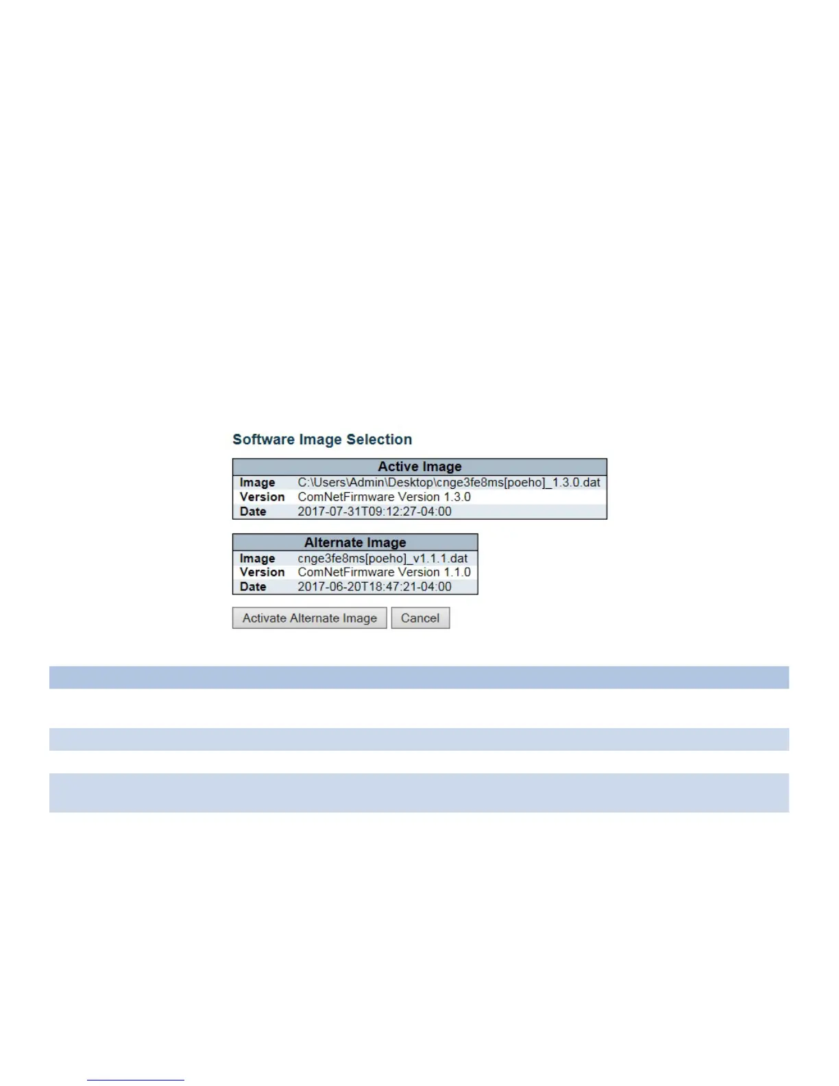 1. In case the active firmware image is the alternate image, only the “Active Image” table is