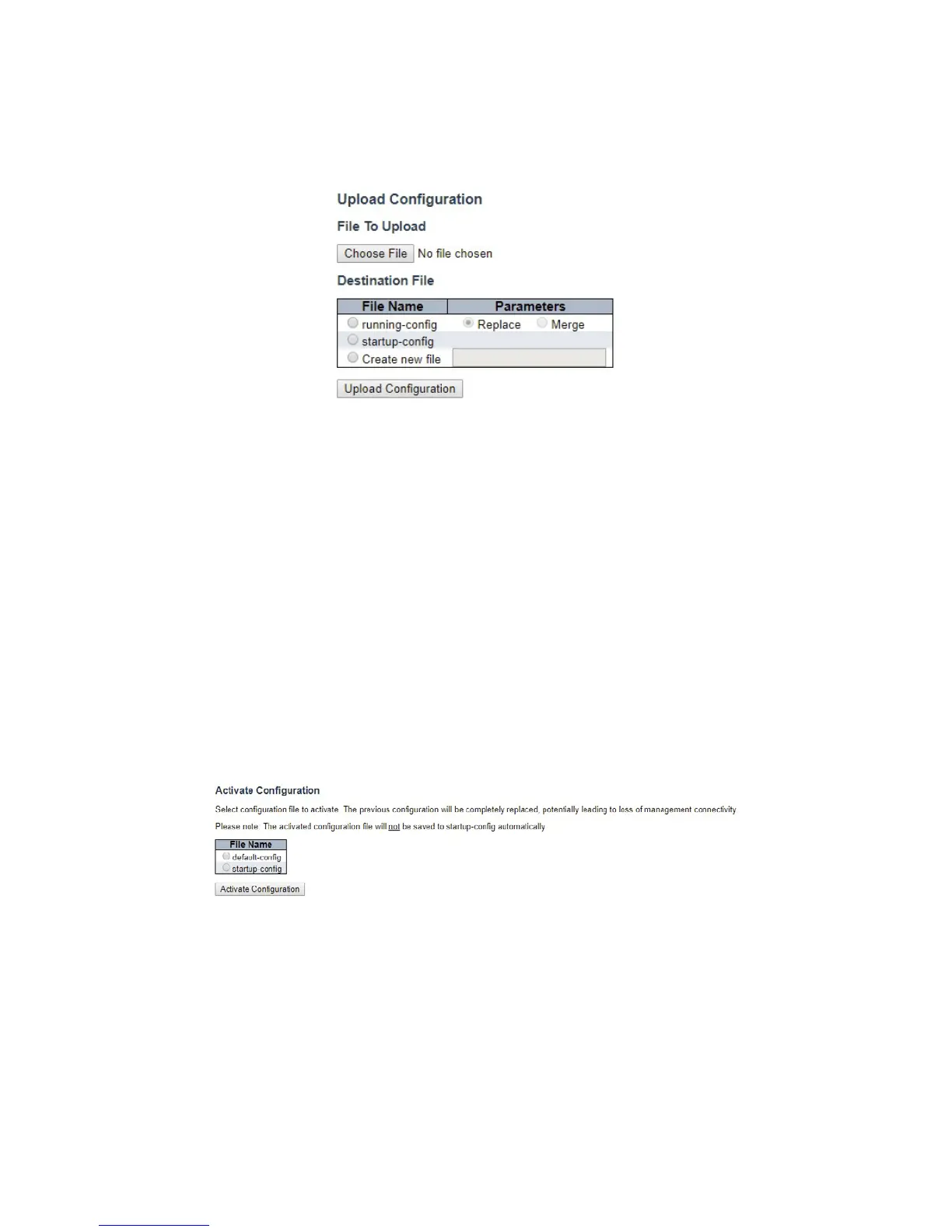 It is possible to activate any of the configuration files present on the switch, except for running-