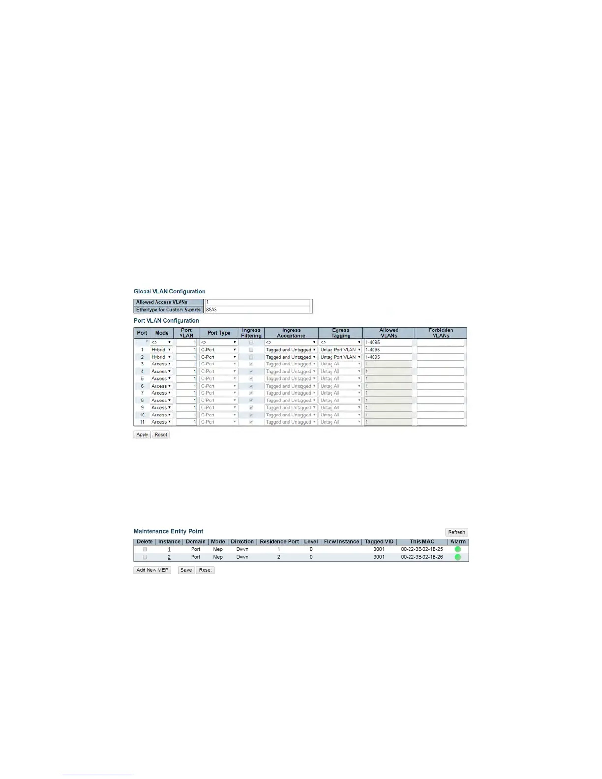 Figure 2 – Switch 1 Port 1 and 2 MEP Configuration