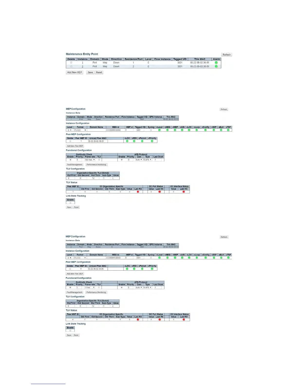 3. Edit MEP2 of switch 3 by clicking 2 and configuring the MEP as shown, and click Save or Apply.
