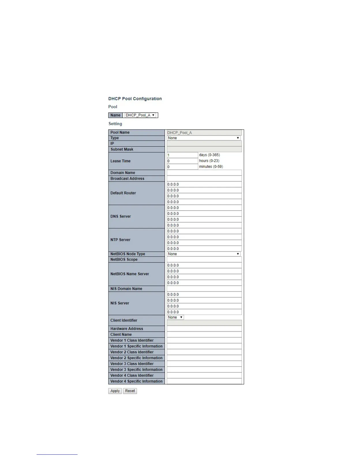 Comnet CNGE3FE8MSPOE - DHCP Pool Configuration