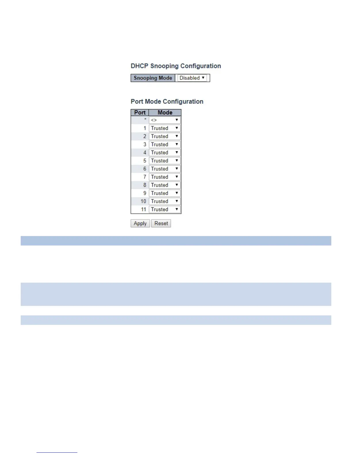 Enabled: Enable DHCP snooping mode operation. When DHCP snooping mode operation is
