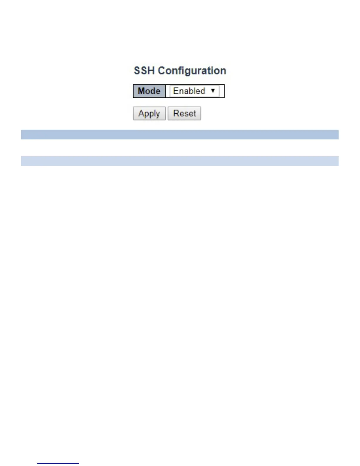 Mode Indicates the SSH mode operation. Possible modes are: Enabled: Enable SSH mode operation.
