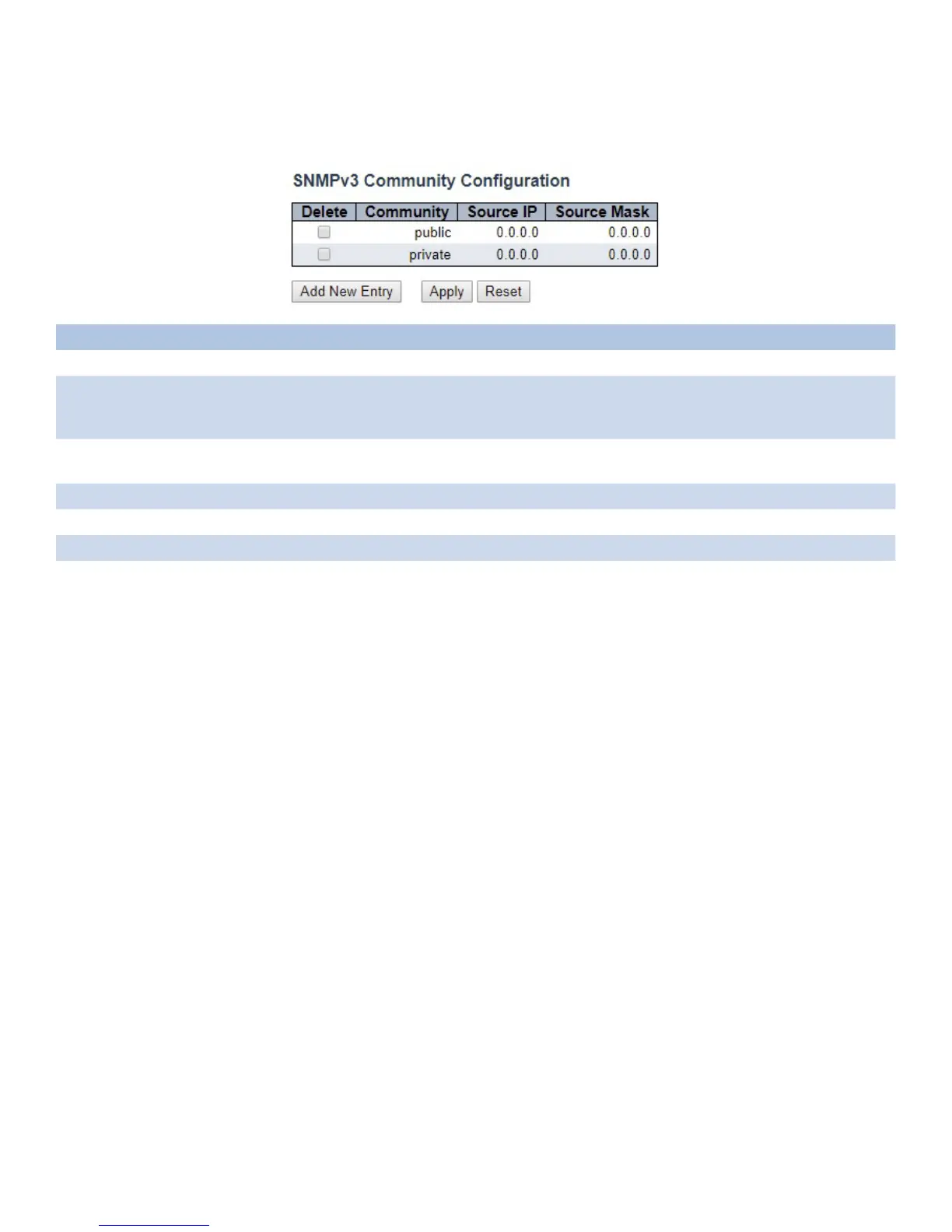 Configure SNMPv3 community table on this page. The entry index key is Community.